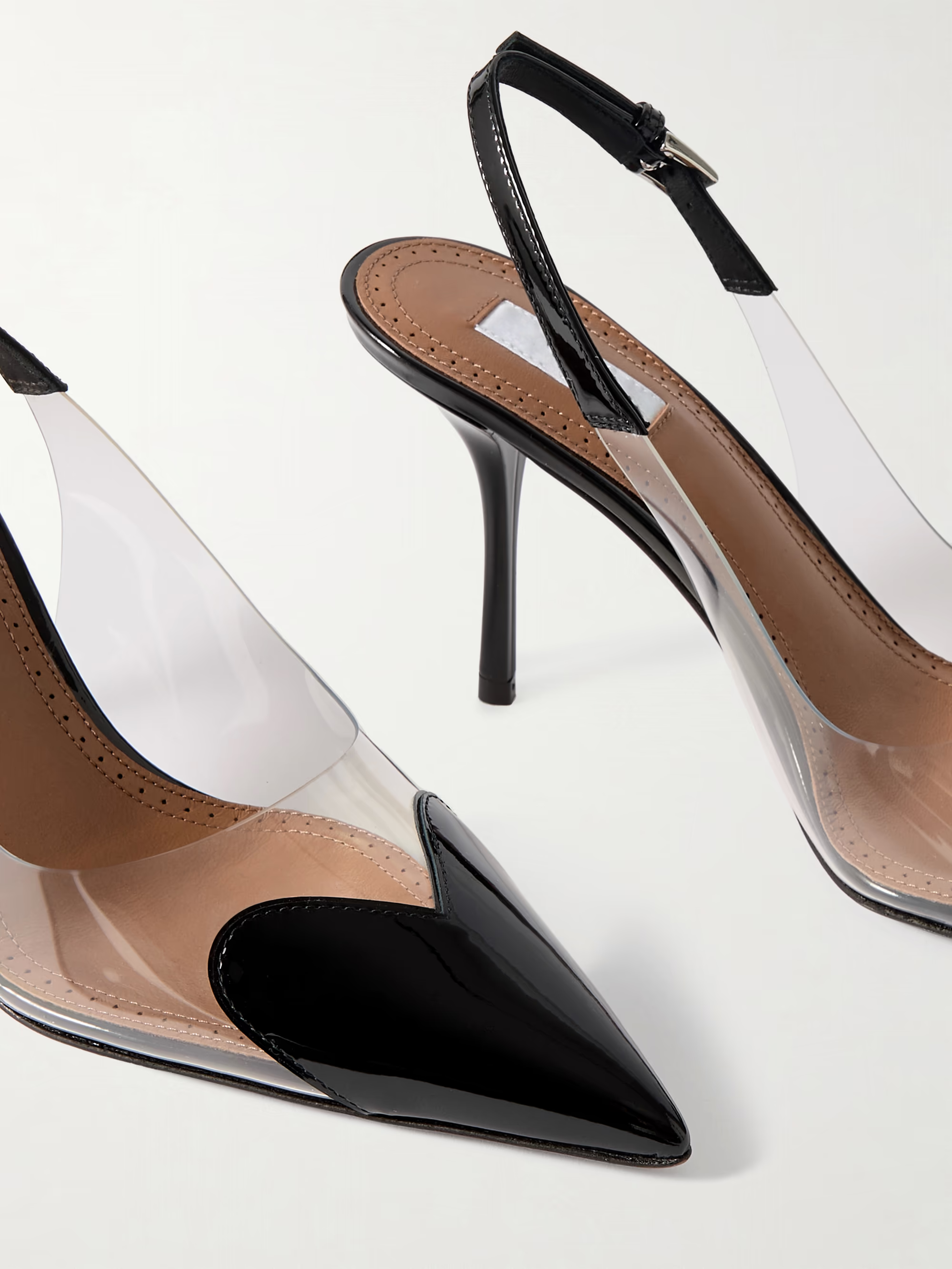 Sweet meets sleek in the Irene heels. Designed with a sculpted stiletto, transparent detail, and a pointed heart-shaped toe cap that steals the spotlight. These stilettos elongate the legs while keeping things minimal and chic.
