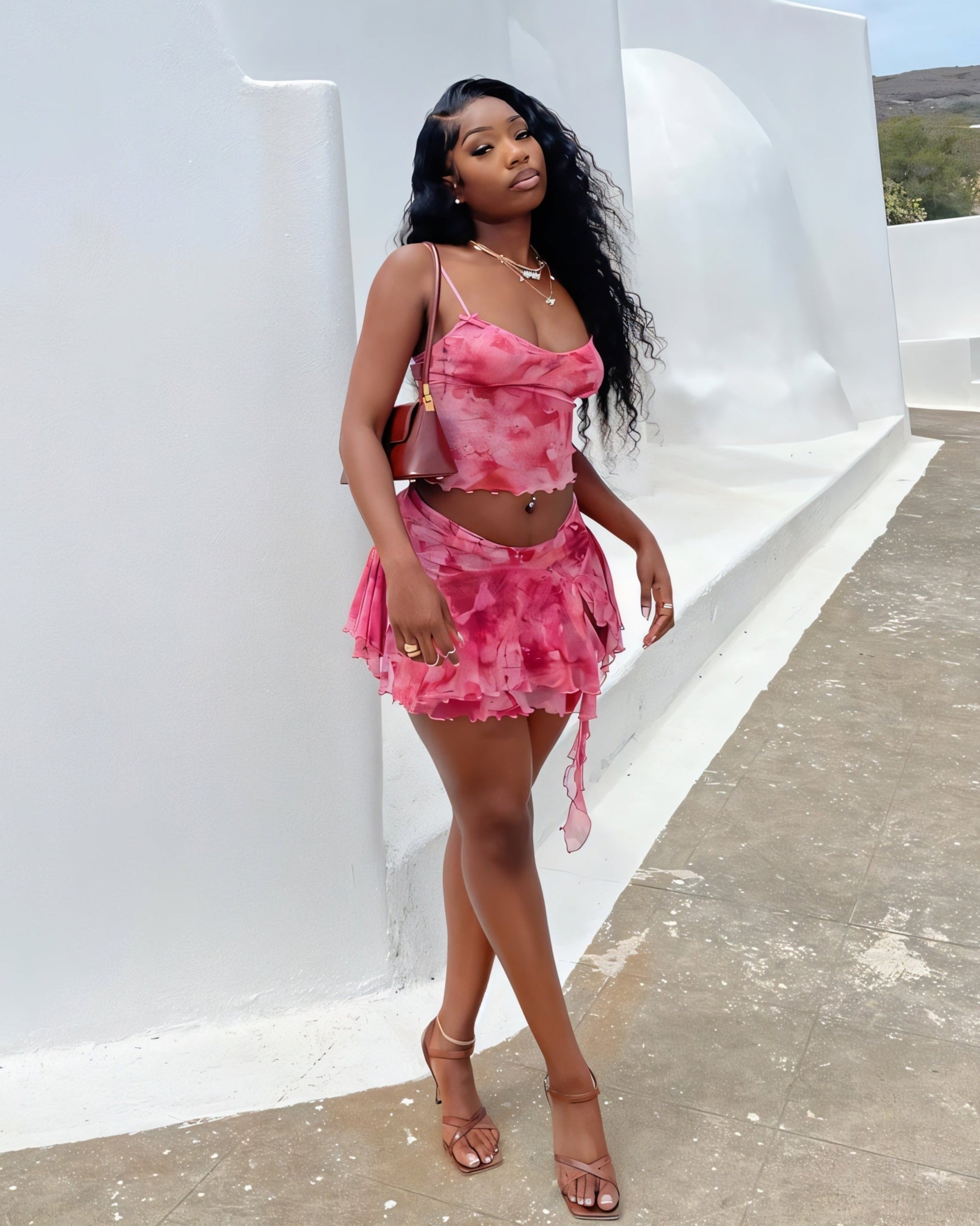 DELILAH Camisole Top & Ruffle Mini Skirt Set
