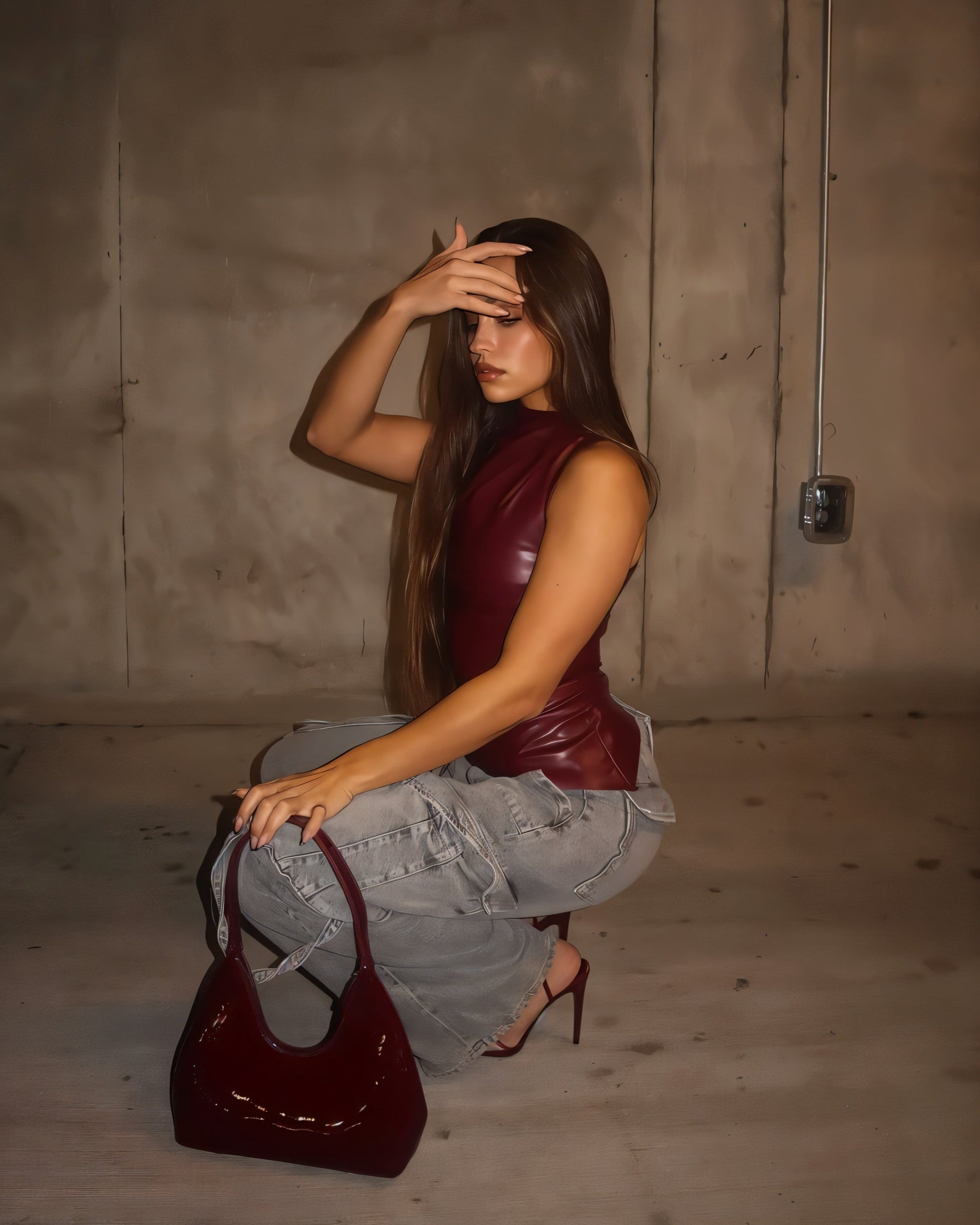 MABEL Faux Leather Draped Top