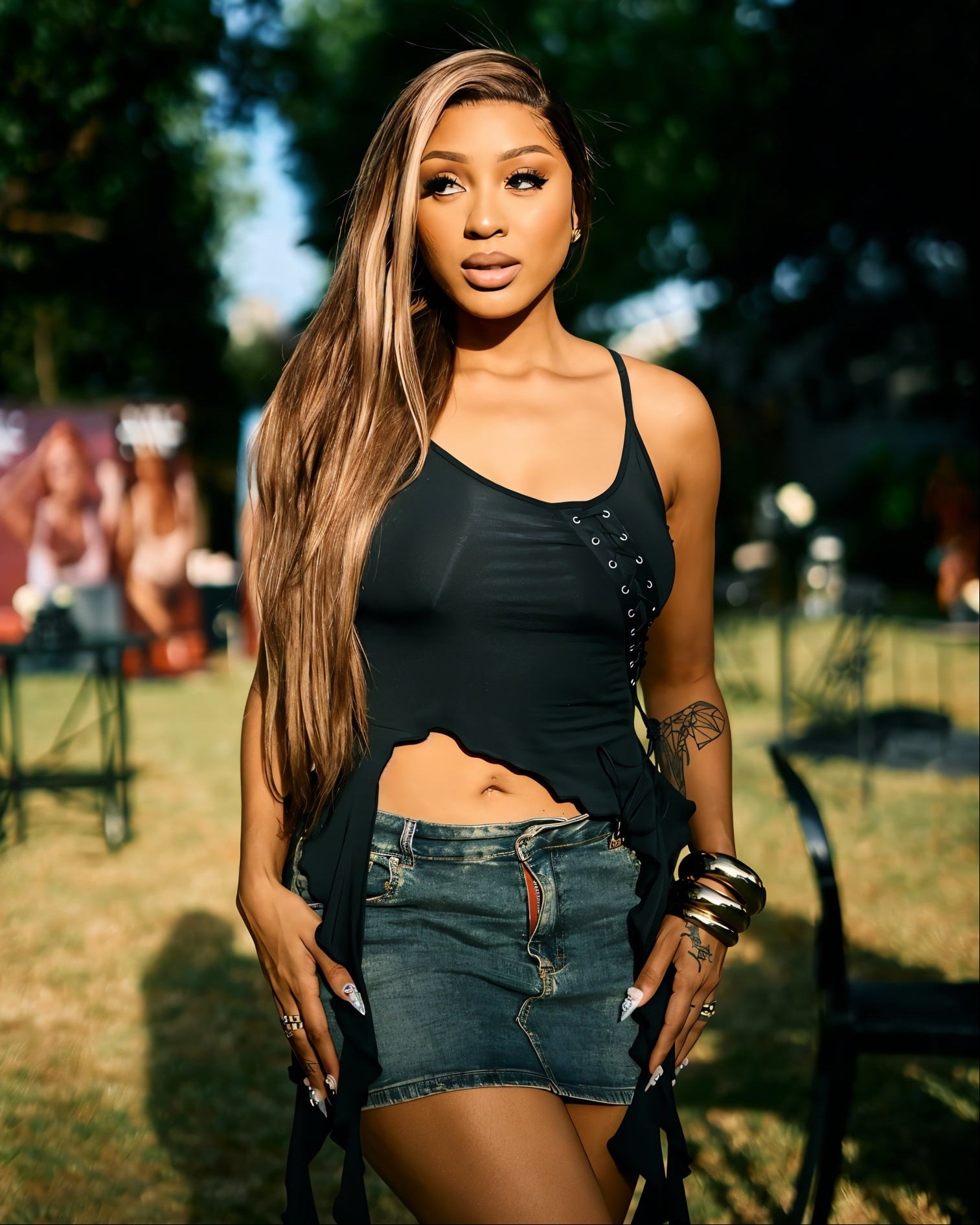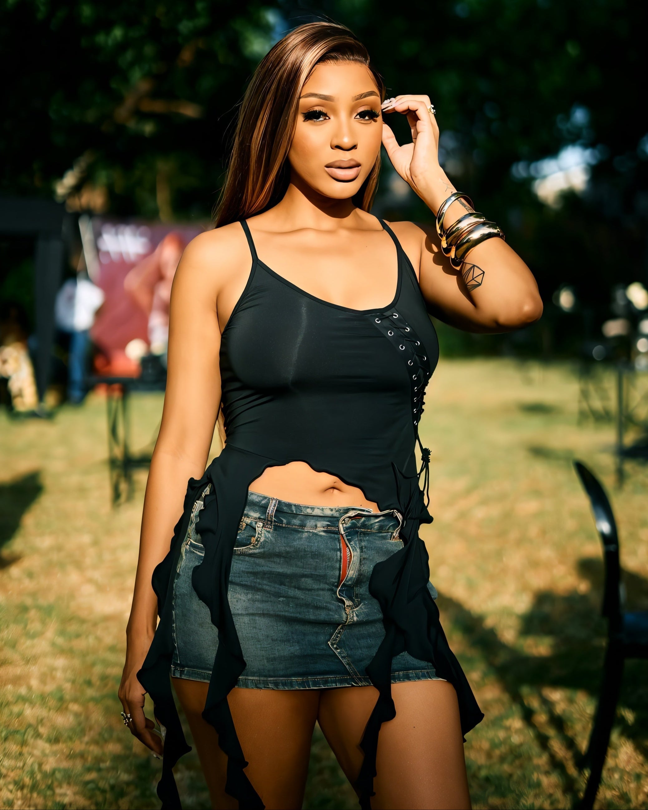 The Maxine top keeps it edgy with a corset-style lace-up front and jagged, ruffle-edge straps that drape past the hips. Made from smooth stretch fabric with a close fit through the bodice, this tank takes basic and makes it bad.